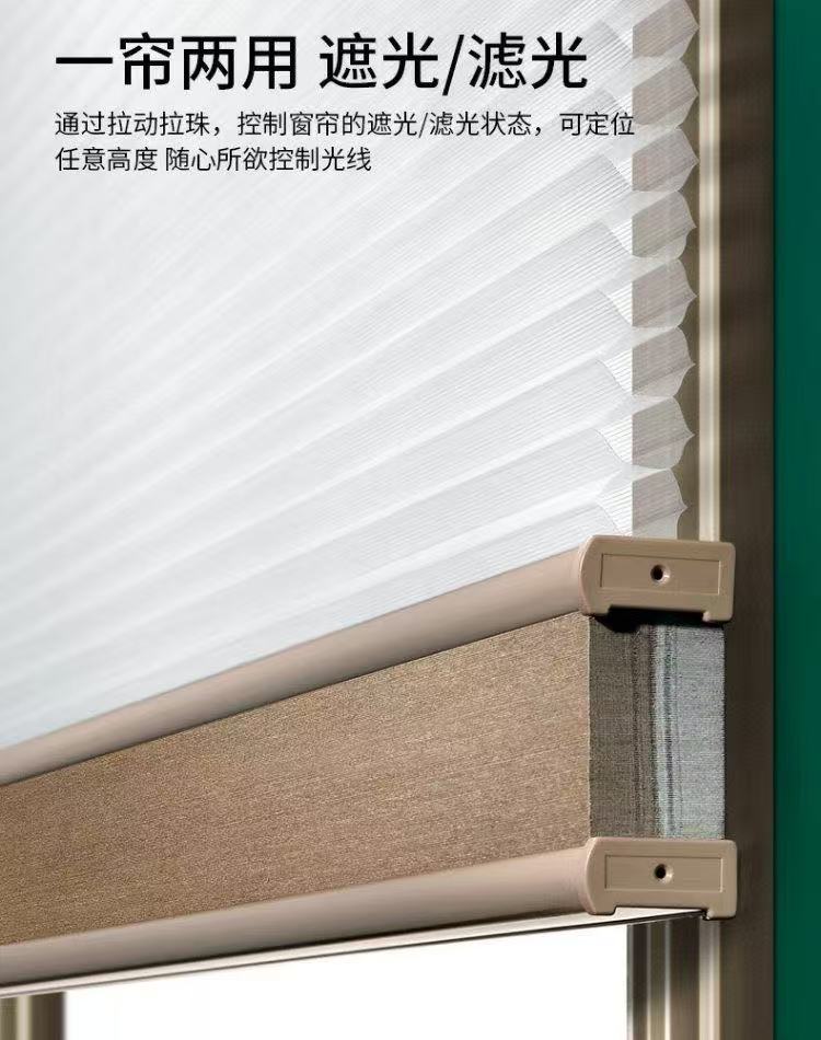 .双层结构:半透日帘(柔光)+ 全遮光夜帘(暗房)