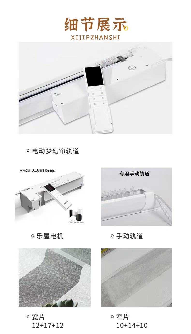 - 静音顺滑,操作舒适搭配铝合金轨道,拉合轻盈静音;电动款支持遥控 / 语音 / 智能联动,高端便捷,提升居住体验。