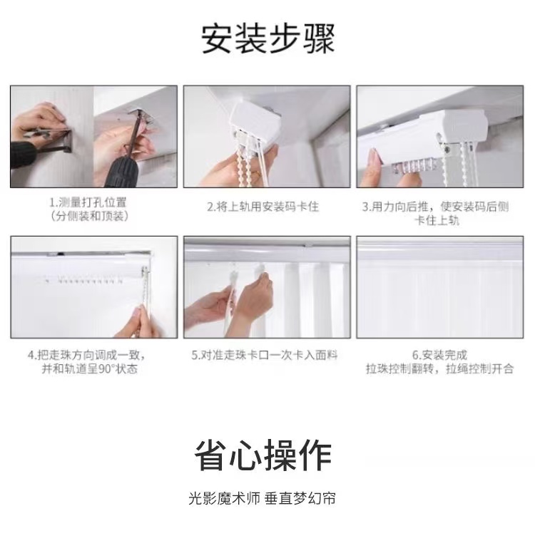 - 易清洁、好打理,不易积灰表面顺滑不沾灰,日常用鸡毛掸、吸尘器即可清洁,部分可水洗,比布帘、百叶窗更省心。