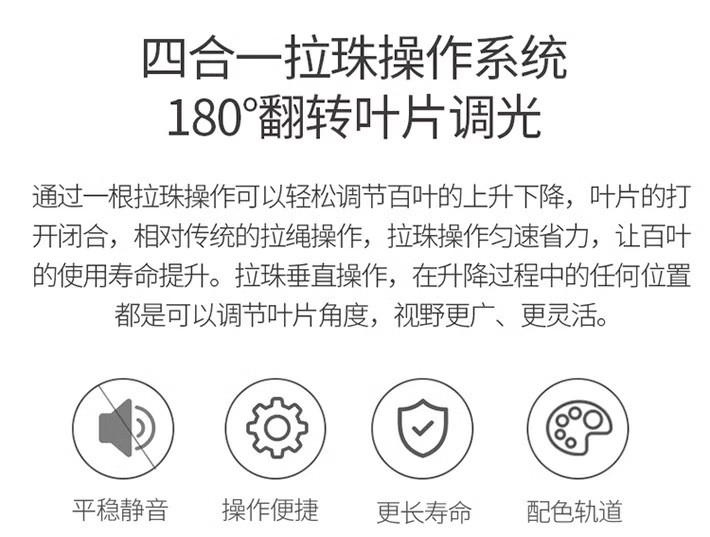打破单一操控局限,手动款转动拉珠进行操作,无需通电、成本低、耐用易上手,适合小户型、租房族;电动款搭载静音电机,支持遥控、语音、APP智控,精准调角升降,老人小孩易操作,适配大户型、高窗与智能家居环境,兼顾传统与智能需求。