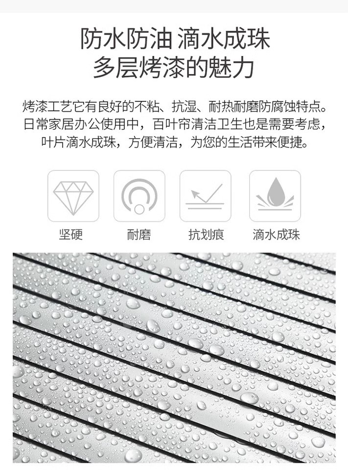 叶片光滑平整,不易积灰吸附毛发,日常掸扫、擦拭即可清洁,无需拆卸水洗;材质多为铝合金、PVC、实木,防水防潮、抗霉抗变形,厨房、卫生间等潮湿区域也能放心用,维护成本极低。